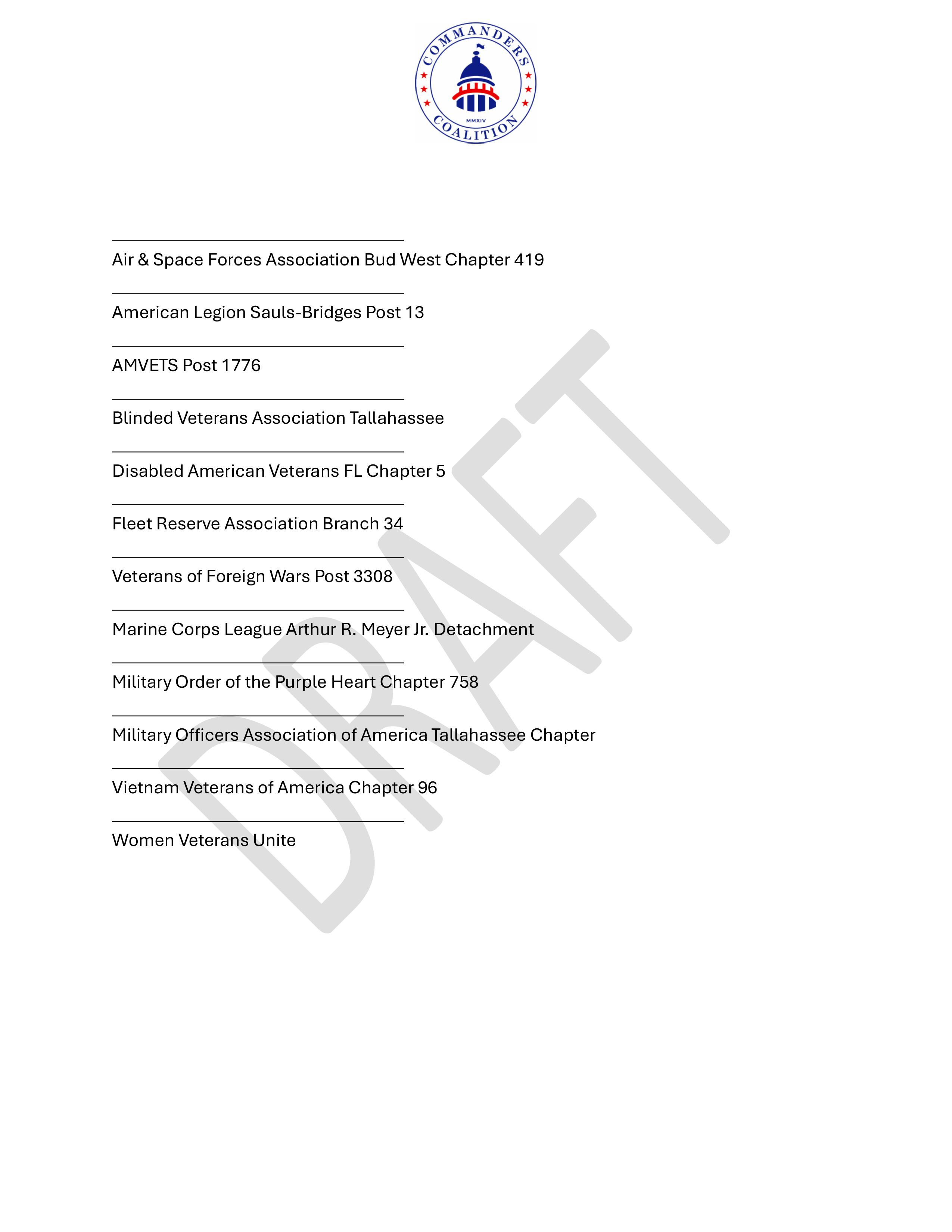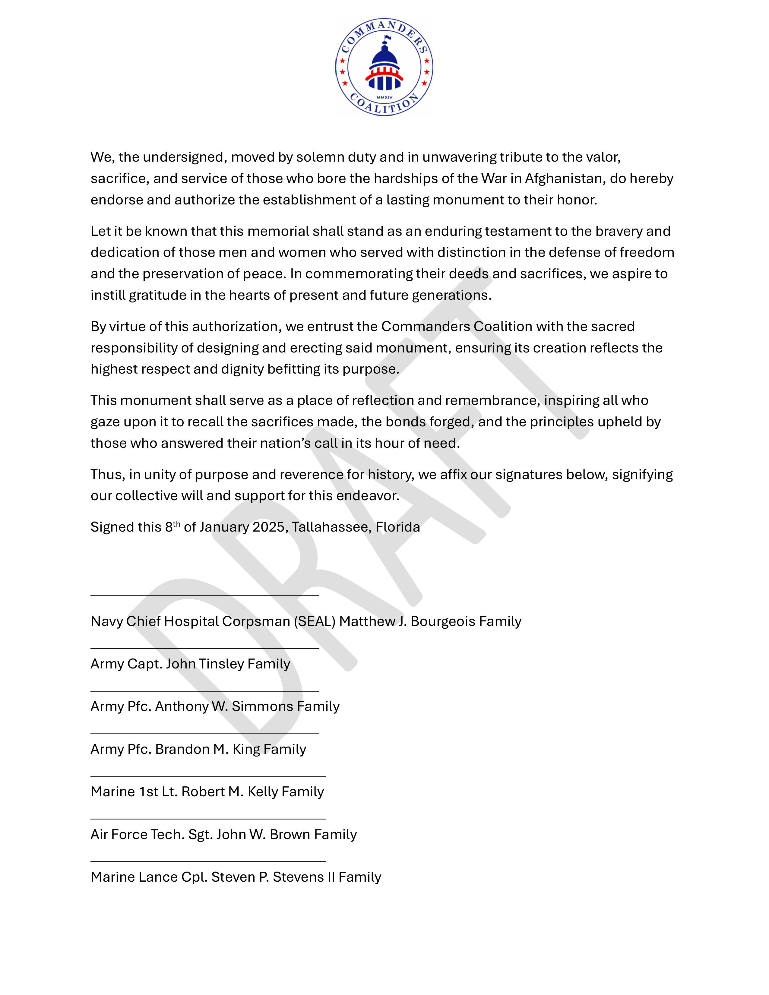 I want to be clear about about one thing. Signing this declaration in no way shape or form obligates your organization to fund one penny towards the memorial. This is simply an approval letter that is required by the City of Tallahassee and possibly the State of Florida.