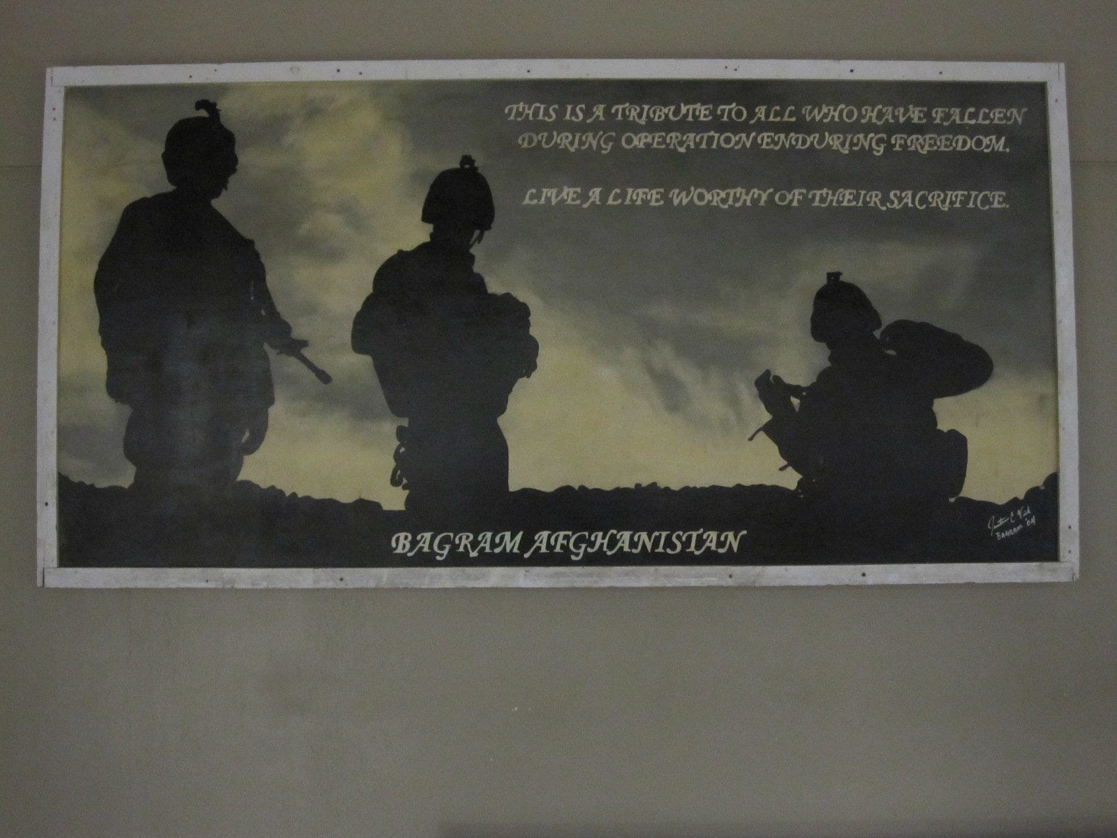 I was passing through the Air Terminal at Bagram Airfield, Afghanistan, when I saw this painting on the wall. It stopped me dead in my tracks. Not knowing if I would ever see it again, I took this photo.