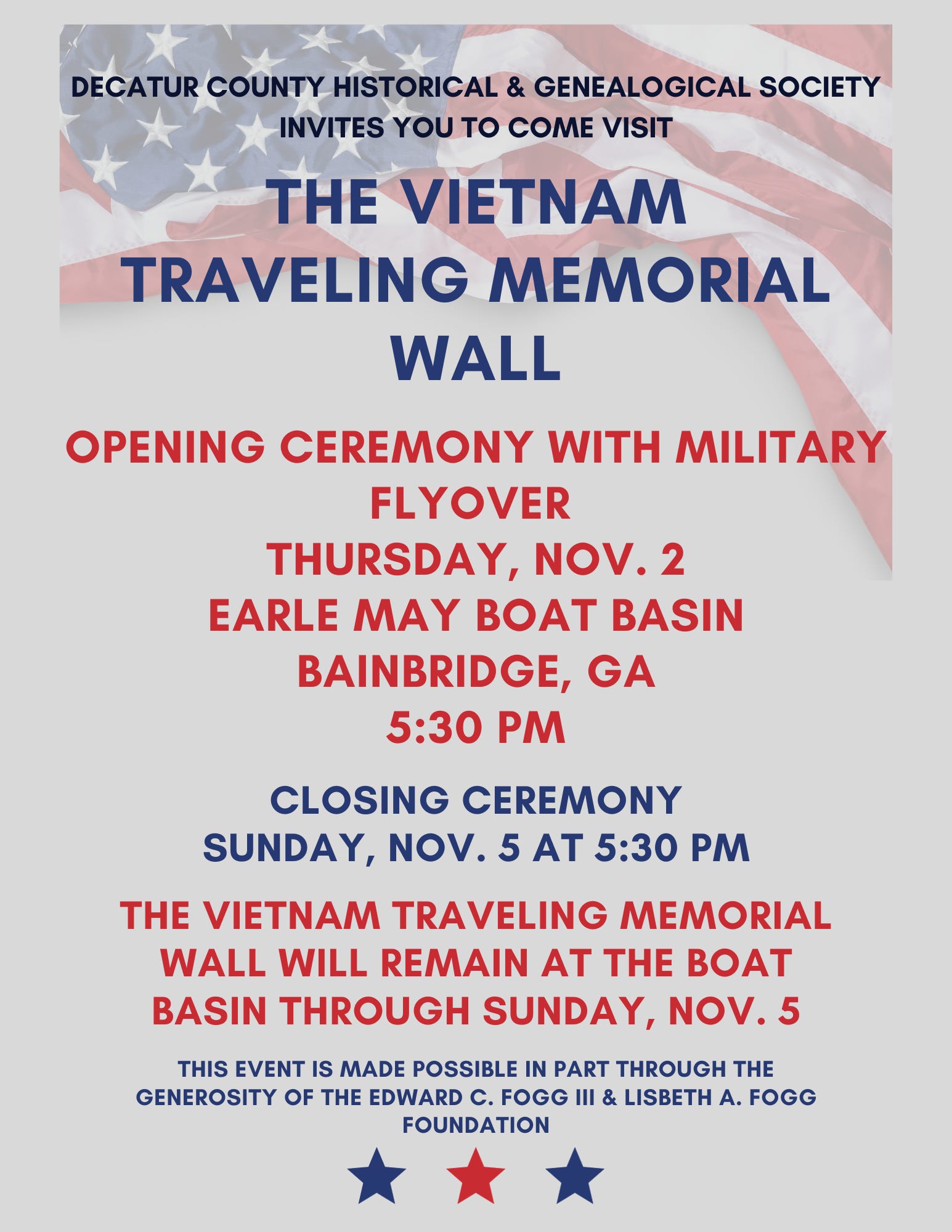 For those that are motorcycle enthusiasts, you are welcome to join the escort of The Wall from Climax, GA to the boat basin.Â