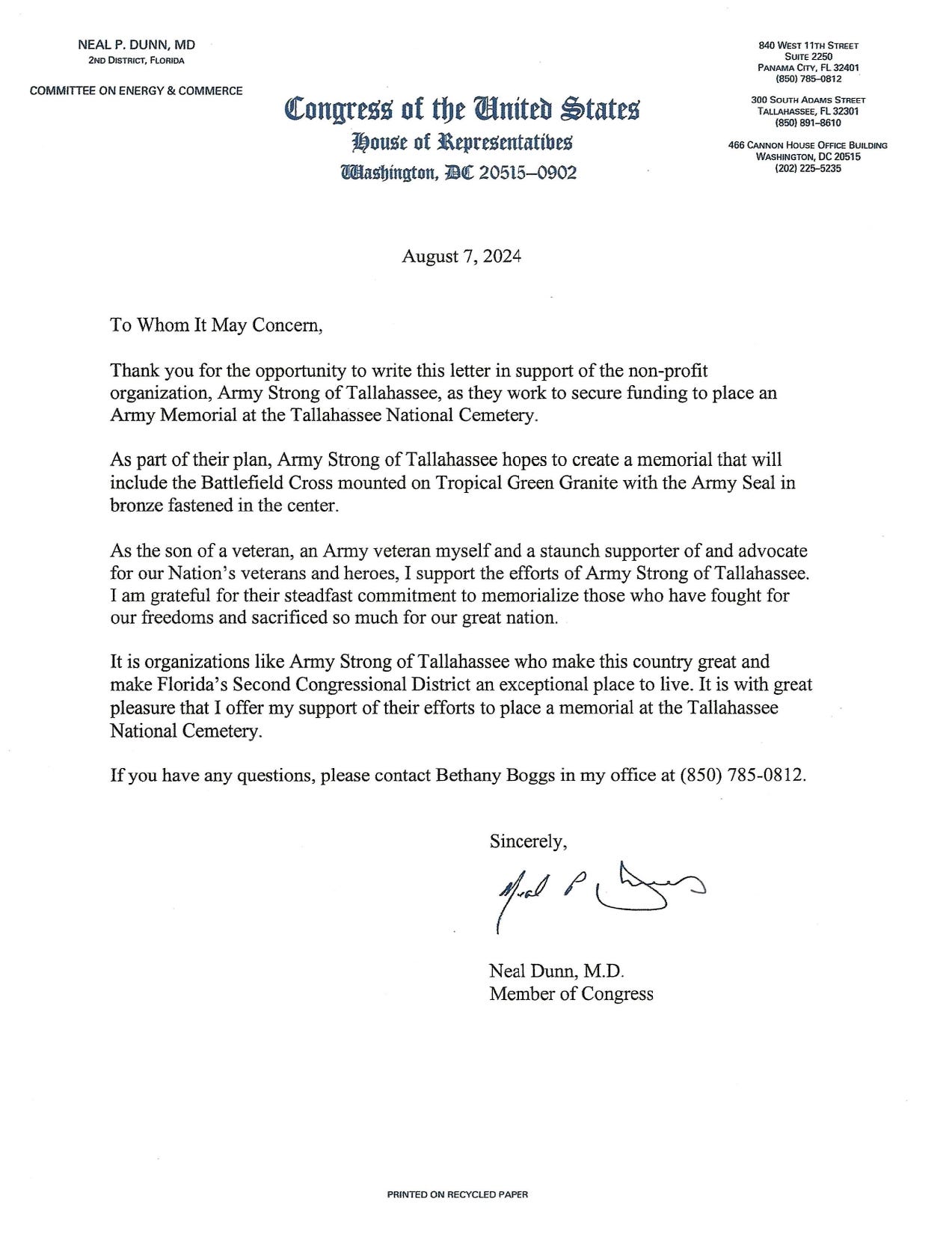 Amanda Daughtry, Case Worker, Congressman Neal Dunn’s Office. No report.