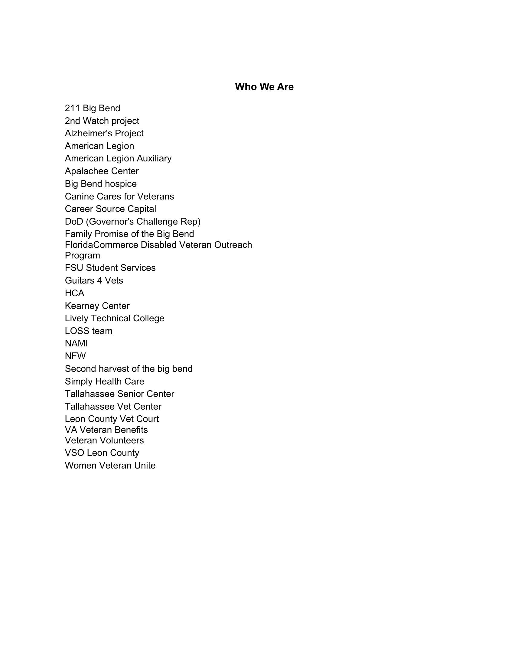 clinic! New service providers in recent weeks included the FDVA (VSO and