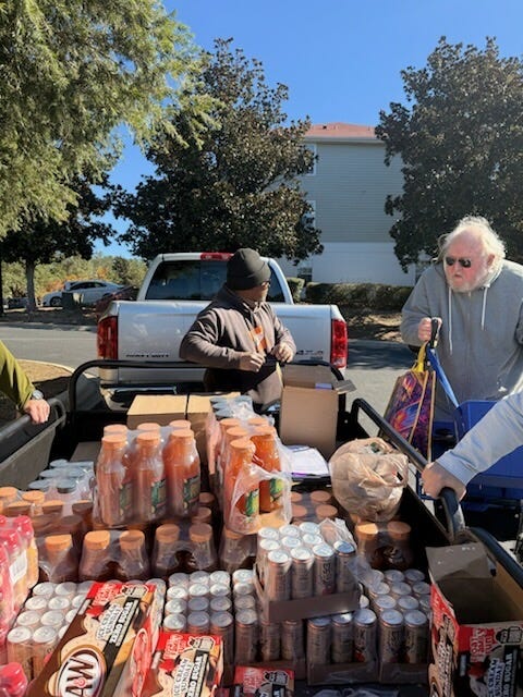 The Legal Clinic yesterday at American Legion Sauls Bridges Post 13 included our volunteer Team of 19, including 7 attorneys, & hosted 19 Veterans and family walking in; (one came up from Tampa by bus) several Veterans volunteered with set up, intakes, etc. even though their court-ordered community service requirements have already been completed (Shane, Khalid, Gregory). Wednesday, Khalid, and Gregory drove to Quincy and, together with Eddie, Leonard, and Chris Bodiford, delivered a variety of drinks (no food items were available this week!!) to several locations around Tallahassee again.