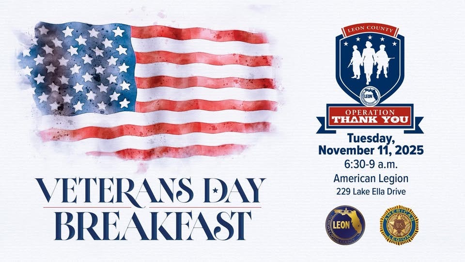Operation “Thank You for Your Service” breakfast is at the Post on Veterans Day beginning at 0630 - 0900. Each year the Post and Leon County Government partner to host the breakfast. Come enjoy a full hot delicious breakfast and enjoy the comradery with your fellow Post members and other Veterans. Group pictures will be taken beginning at 0700 by military branch. The Veterans Day Parade is downtown at 1100 on Monroe Street. Following the parade, Mission BBQ is giving any Veteran a “Thank You for Your Service” complementary sandwich all day!