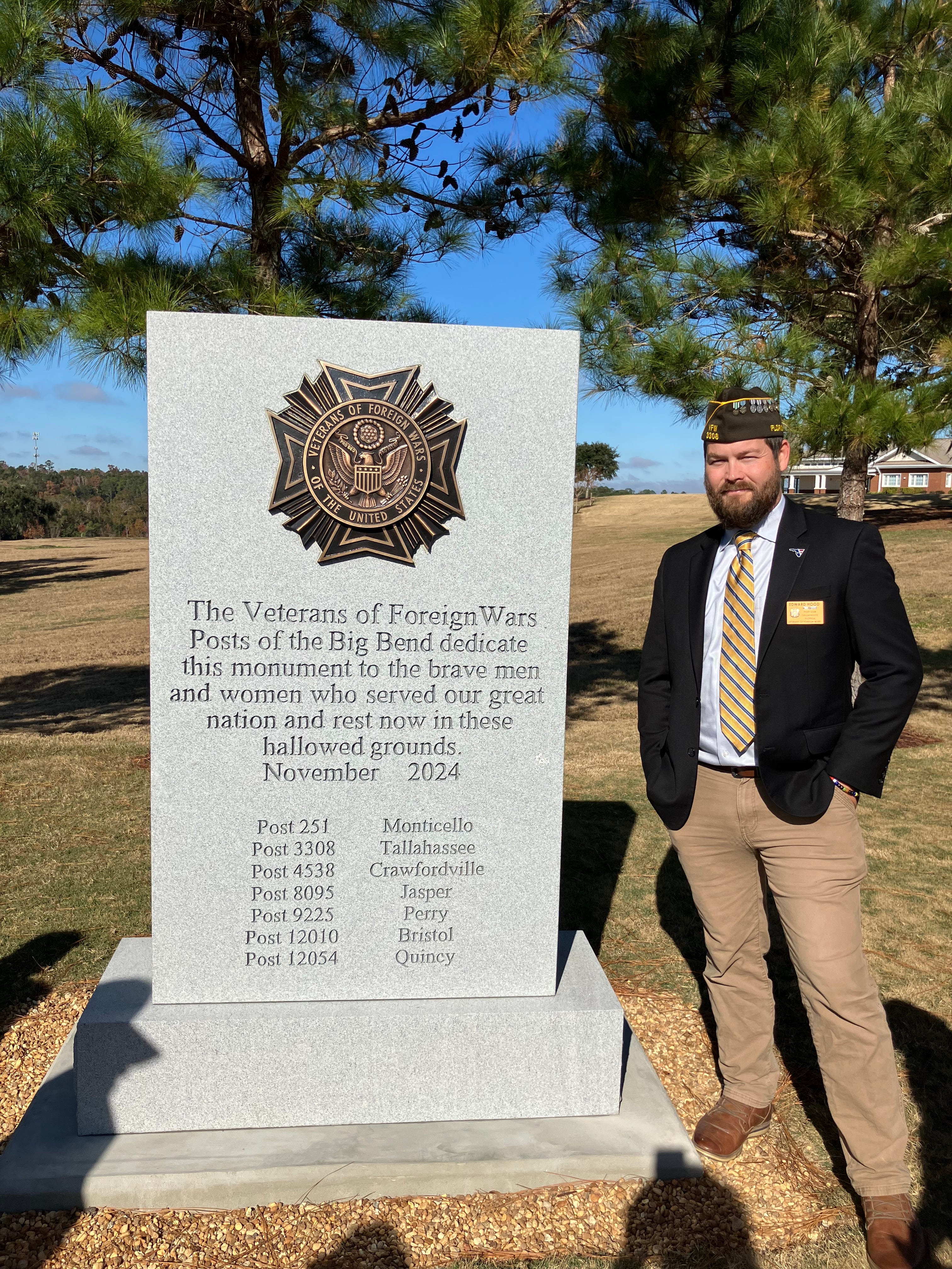 Congratulations VFW Florida District 2 on the dedication of your memorial. Iâm proud to be a member of such an outstanding organization.