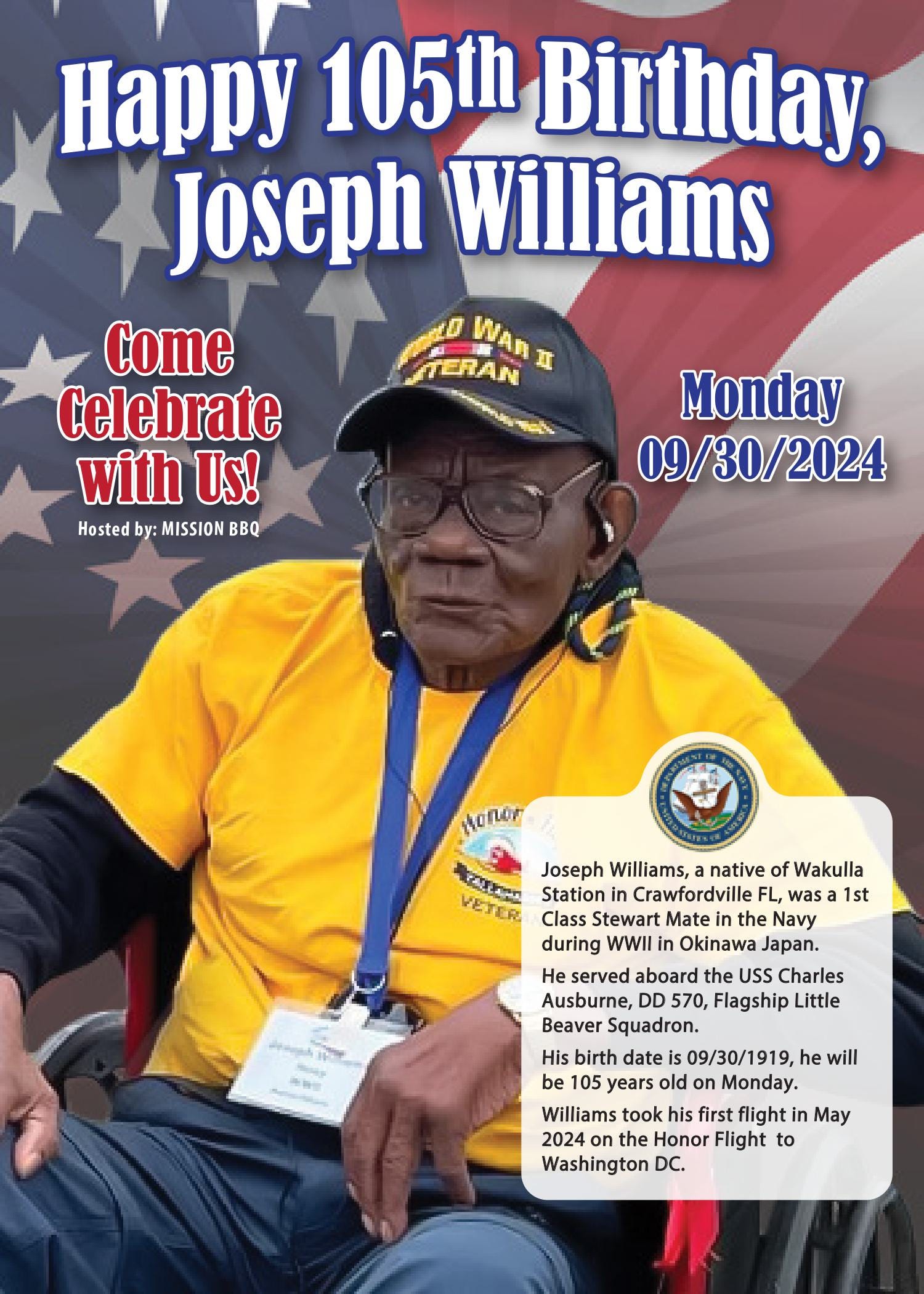 WWII Veteran's 105th Birthday Party at MISSION BBQ 🥳⚠️ 30 Sept 2024 1130-1PM 👋Major John Haynes Outpost 1Sep 30, 2024∙ Paid1ShareGot plans for lunch on Monday??? I hope they include stopping by Mission BBQ to wish this Veteran a Happy Birthday!This post is for paid subscribersSubscribeAlready a paid subscriber? Sign inPreviousNext